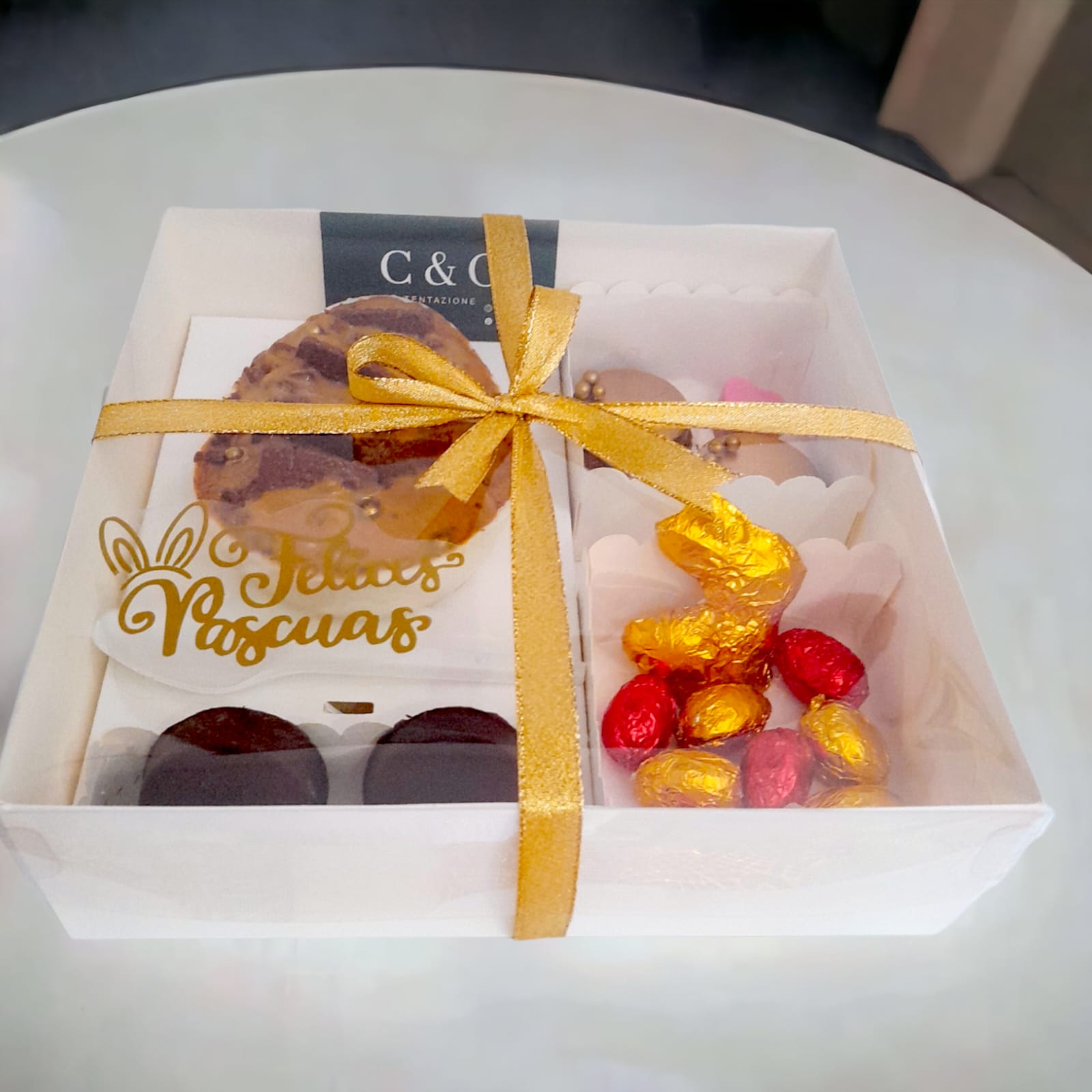 - ▪︎ Caja personalizada con felices Pascuas.