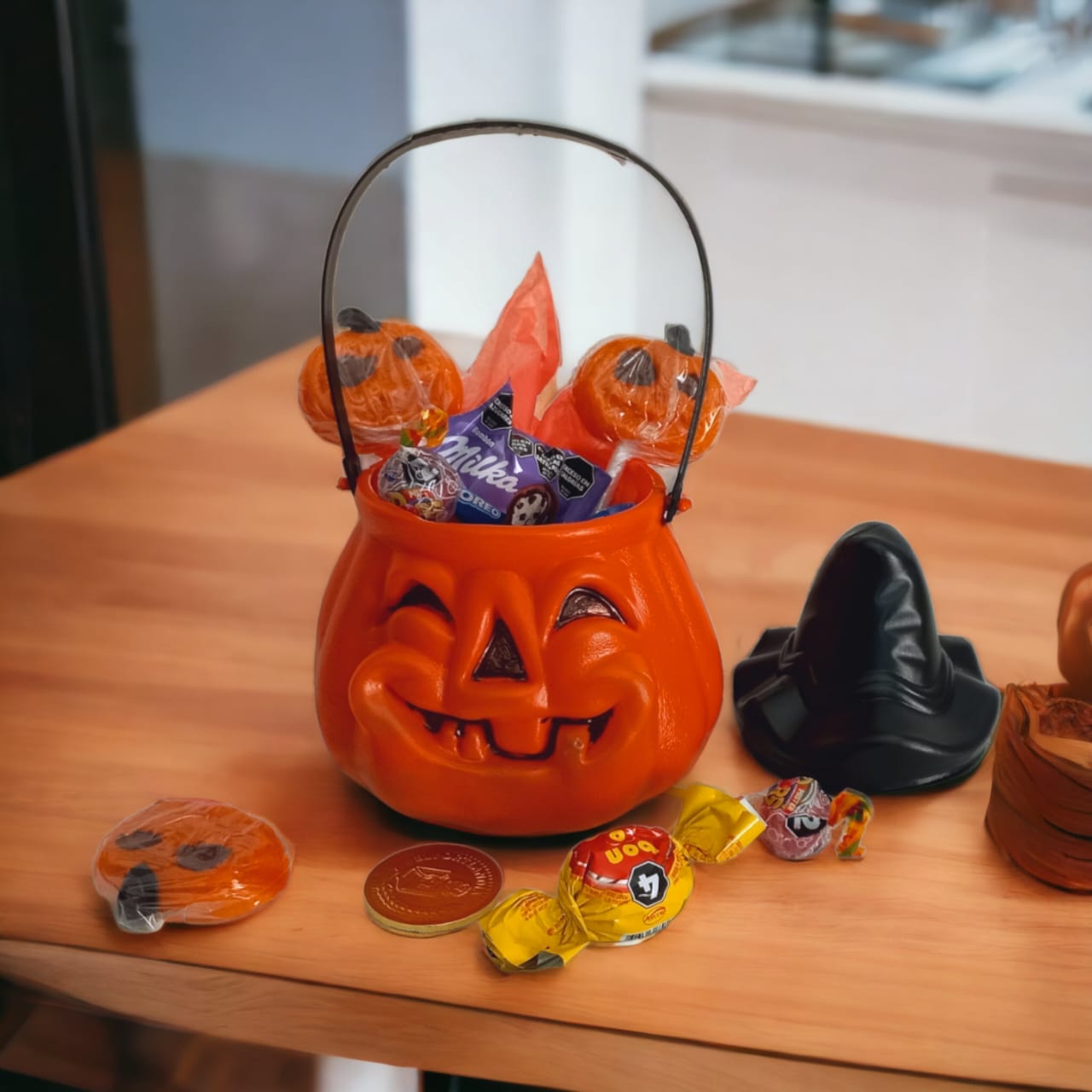 HALLOWEEN🎃 VI 0.00$ Agotado Categoría: Halloween Descripción Descripción HALLOWEEN🎃 Calabaza con Golosinas. 2 Paleta Calavera. 2 Dos Corazones de felfort. 2 Bombon de milka. 2 Bon o Bon. Moneda de chocolate 2un. Chupetines 2un.