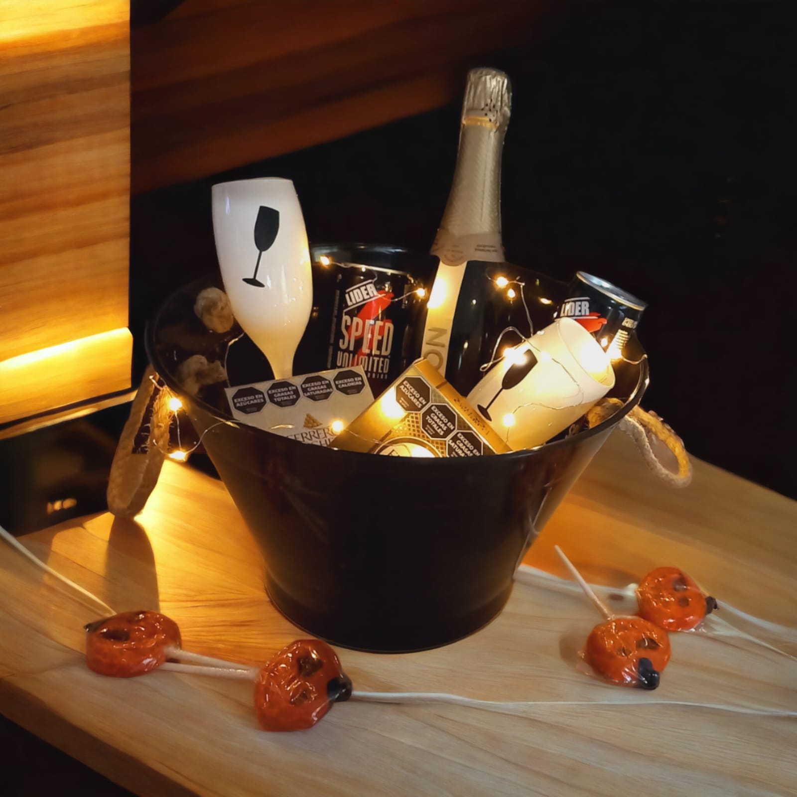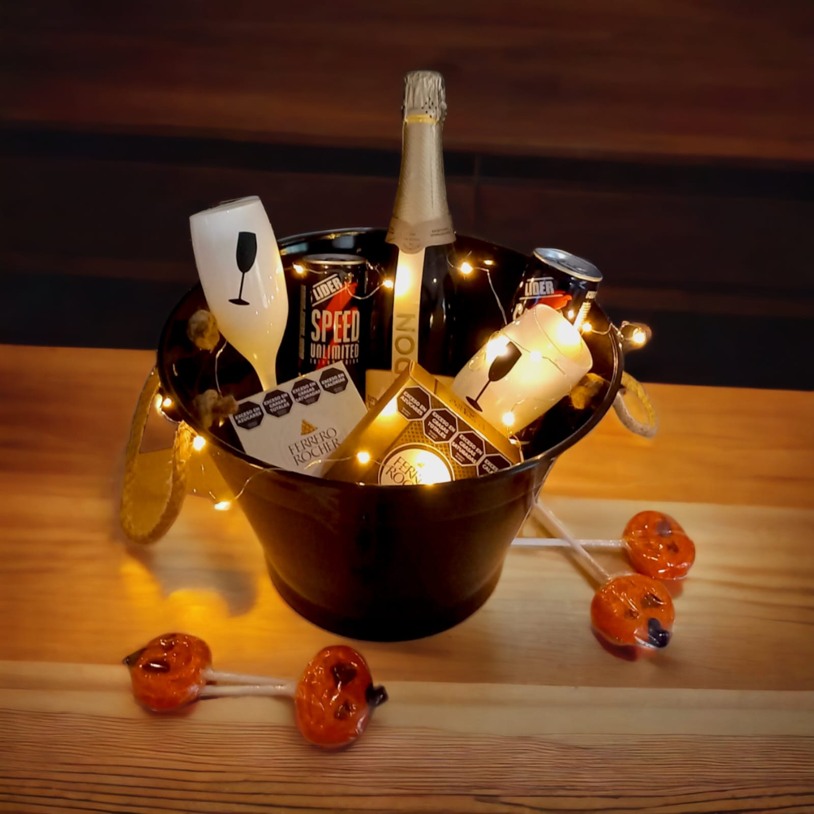 .Halloween ๐Fraperas 0.00$ Agotado Categorรญa: Halloween Descripciรณn Descripciรณn VรSPERA DE TODOS LOS SANTOS ๐ Chandรณn Extra Brut. 2 Bebida energizante SPEED. 2 Ferrero Rocher. 2 Copas de Champagne color blanco. Paleta calavera. Frapera acrรญlica negra.